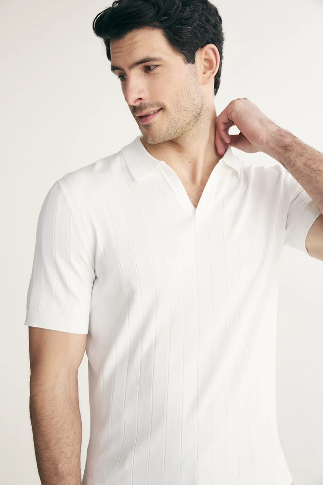 Rib knit johnny collar polo