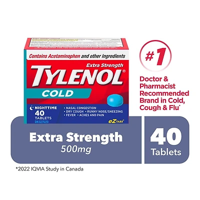 Tylenol Extra Stength Cold eZ Tabs, Relieves Cold symptoms, Nighttime, 40 Count