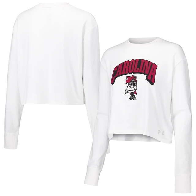 Women's Under Armour White South Carolina Gamecocks Inline All Day Tri-Blend Cropped Long Sleeve T-Shirt