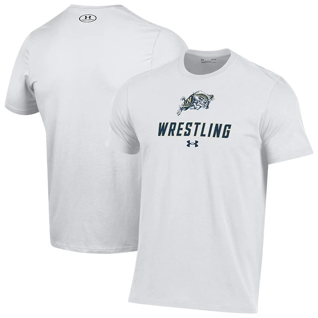 Men's Under Armour White Navy Midshipmen Wrestling Performance T-Shirt