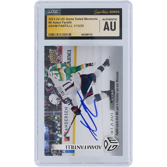 Adam Fantilli Columbus Blue Jackets Autographed 2023-24 Upper Deck Game Dated Moments Rookie Debut #8 #/1199 CGC Fanatics Witnessed Authenticated Rookie Card