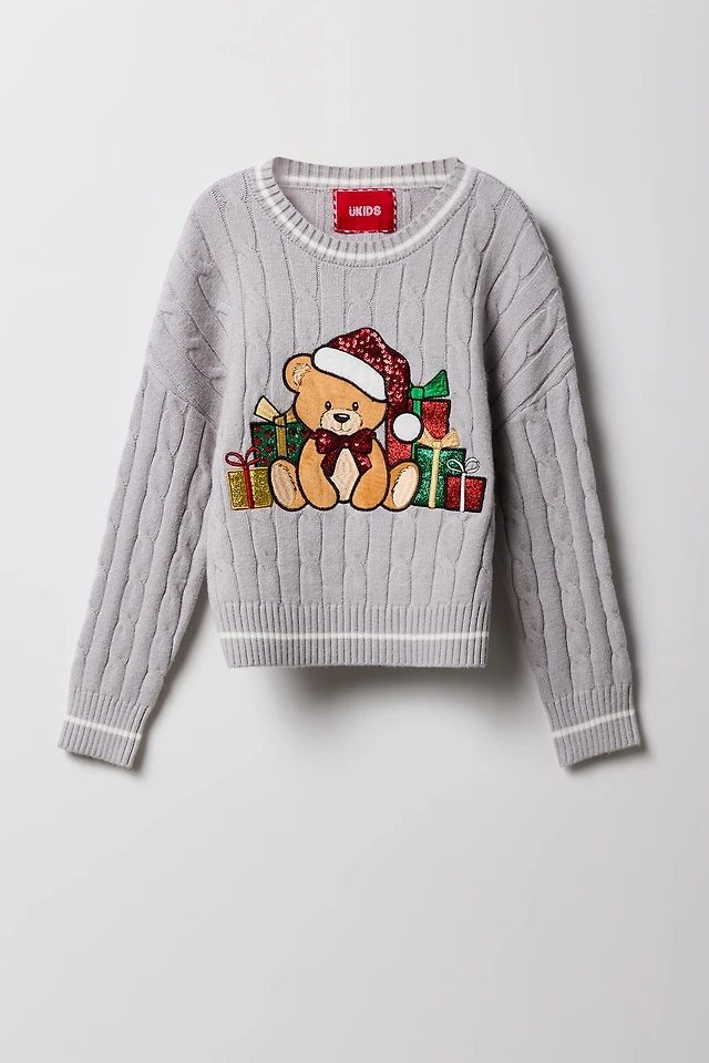 Girls Christmas Teddy Embroidered Sweater