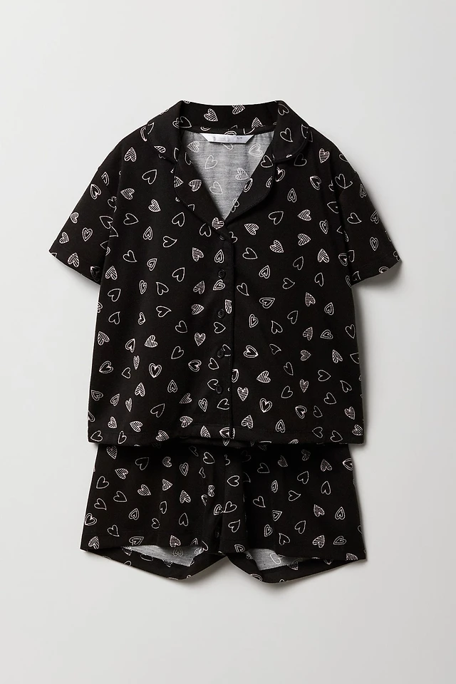 Girls Button-Up Top & Pant 2 Piece Pajama Set