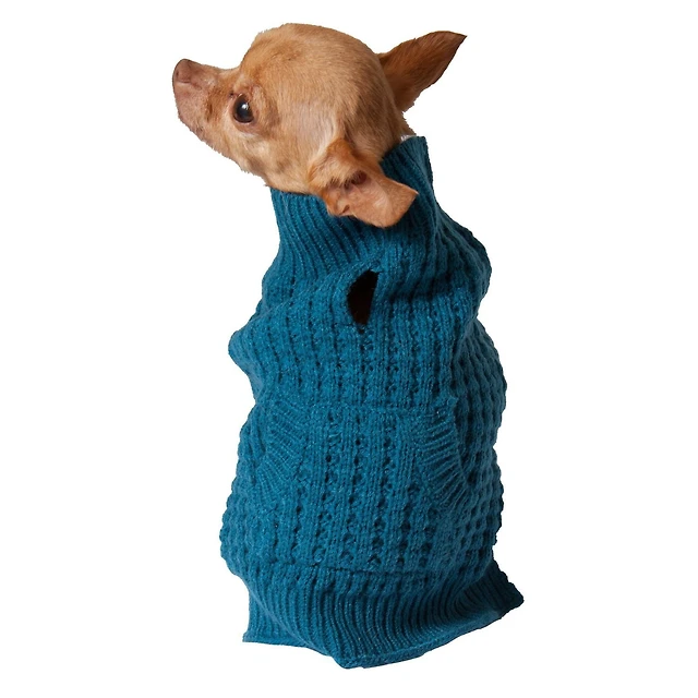 Holiday Time Blue Waffle with Pocket Dog Sweater