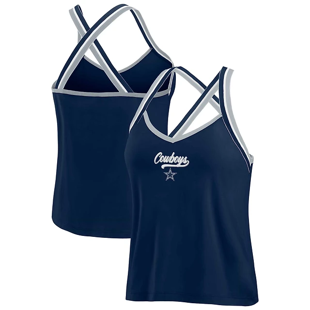 Women's WEAR by Erin Andrews Navy Dallas Cowboys Cross Strap Tri-Blend Tank Top