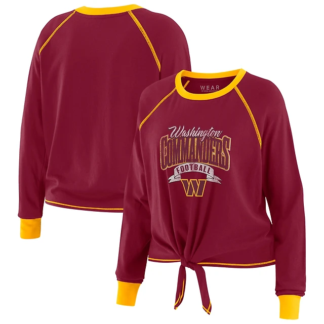 Women's WEAR by Erin Andrews Burgundy/Gold Washington Commanders Plus Tie-Front Long Sleeve Top