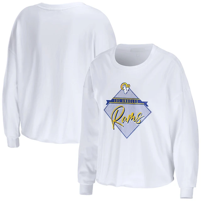 Women's WEAR by Erin Andrews White Los Angeles Rams Domestic Cropped Long Sleeve T-Shirt