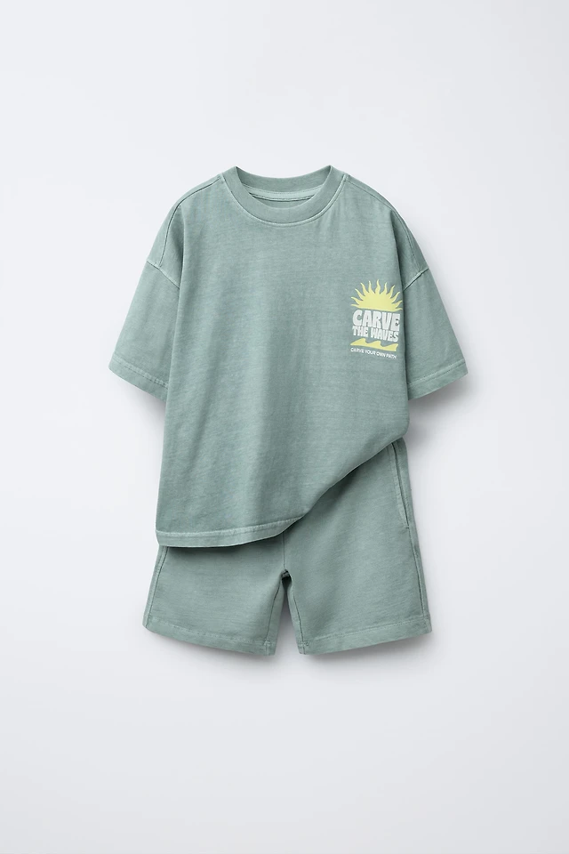 GARMENT DYE PRINT T-SHIRT AND BERMUDA SET