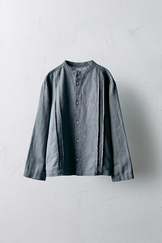 LINEN COTTON MANDARIN COLLAR SHIRT