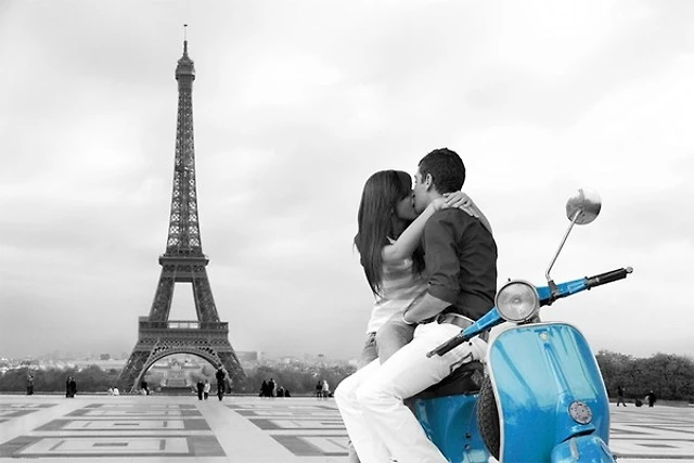 Paris - Eiffel Tower Blue Vespa Travel Romantic