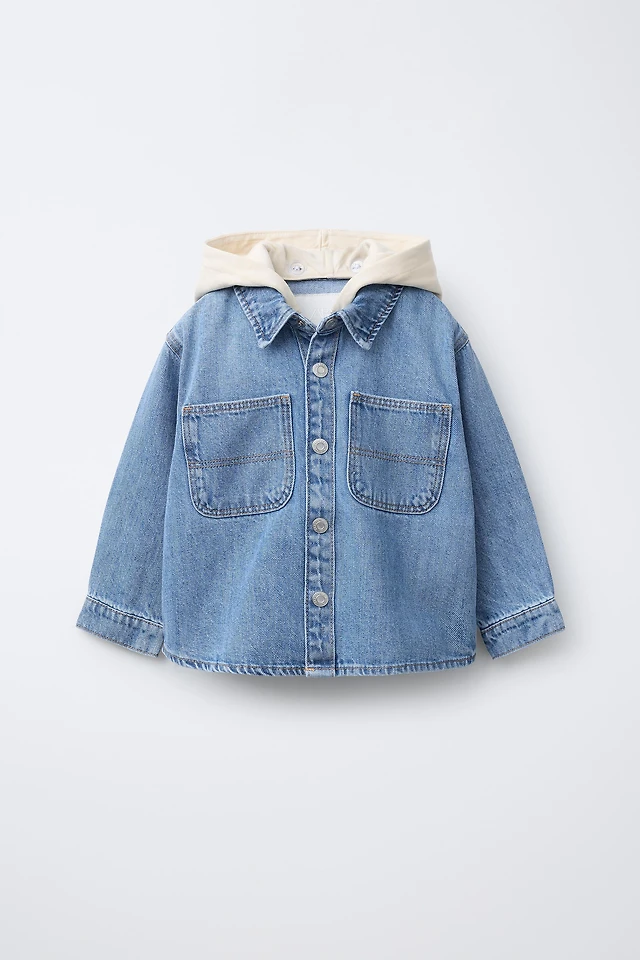 REMOVABLE HOOD DENIM OVERSHIRT