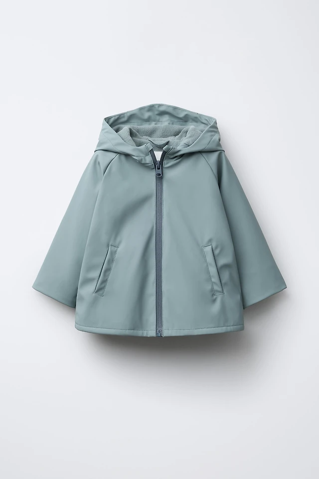 WATER-RESISTANT RUBBERIZED FLEECE-LINED RAINCOAT