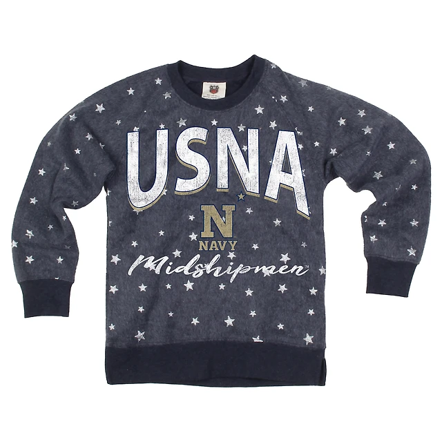 Girls Youth Wes & Willy Navy Midshipmen Shimmer Star Reverse Sweatshirt