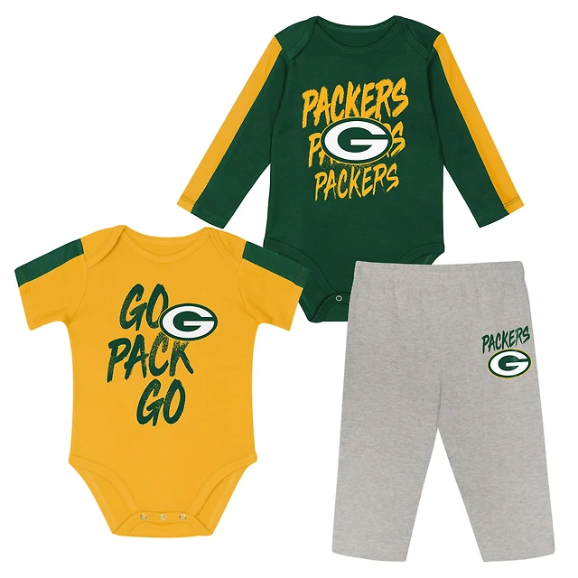 Infant Outerstuff Green/Gold Green Bay Packers Double Down Bodysuits and Pants 3-Piece Set