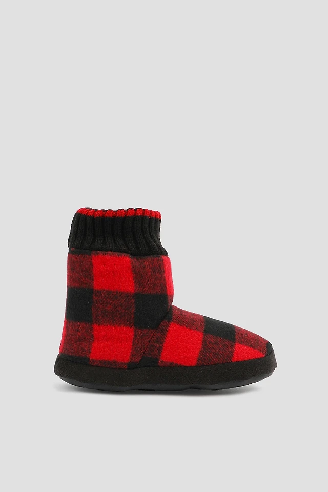 Ardene Kids Plaid Bootie Slippers in Red | Size | 100% Recycled Polyester | Eco-Conscious