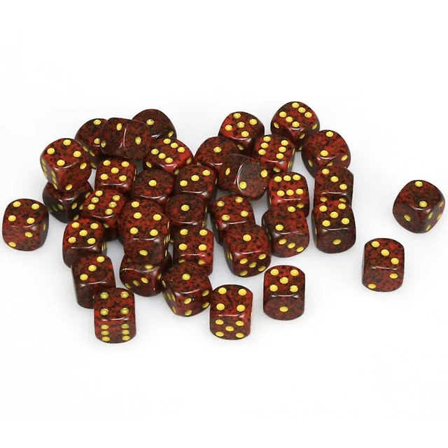 36 dés 6 12mm Scarab Scarlet avec points dorés
