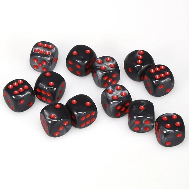 36 dés 6 12mm Gemini rouge/noir avec points dorés