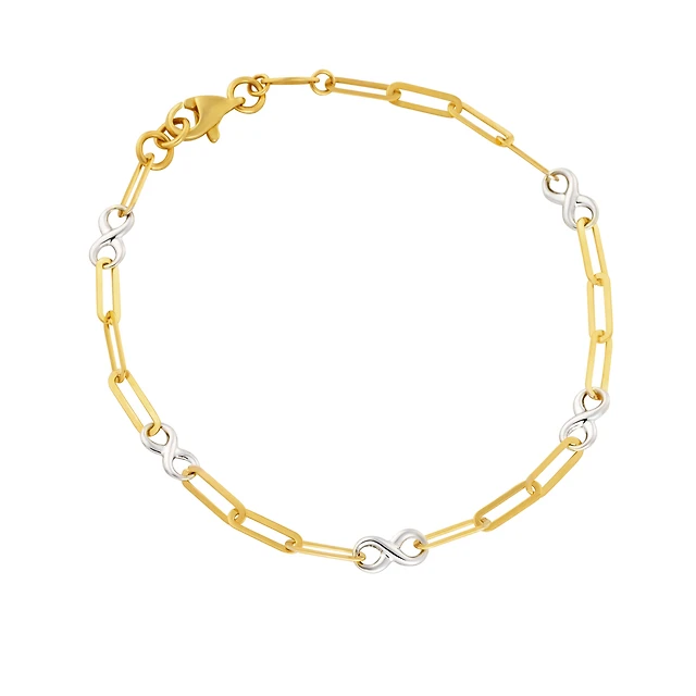 Three-tone10k Gold Bracelet with Hearts - 7.5