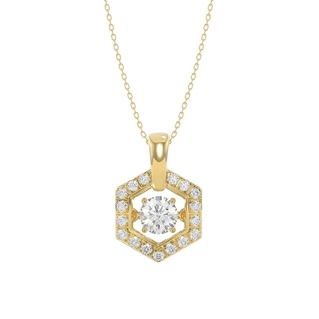 10K Gold Hexagon Pendant Set with Lab-Grown Diamonds with Chain - 18