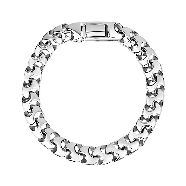 Reversible 2 tone polished Stainless Steel Curb Bracelet - 8. Color: 2 tone | Doucet Latendresse