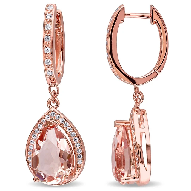 Sterling silver huggies style earrings set with cubic zirconia. Color: white | Doucet Latendresse