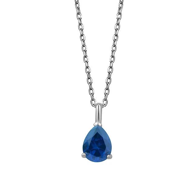 Sterling Silver Lab Saphire Pendant Necklace - Teardrop Charm. Color: white | Doucet Latendresse