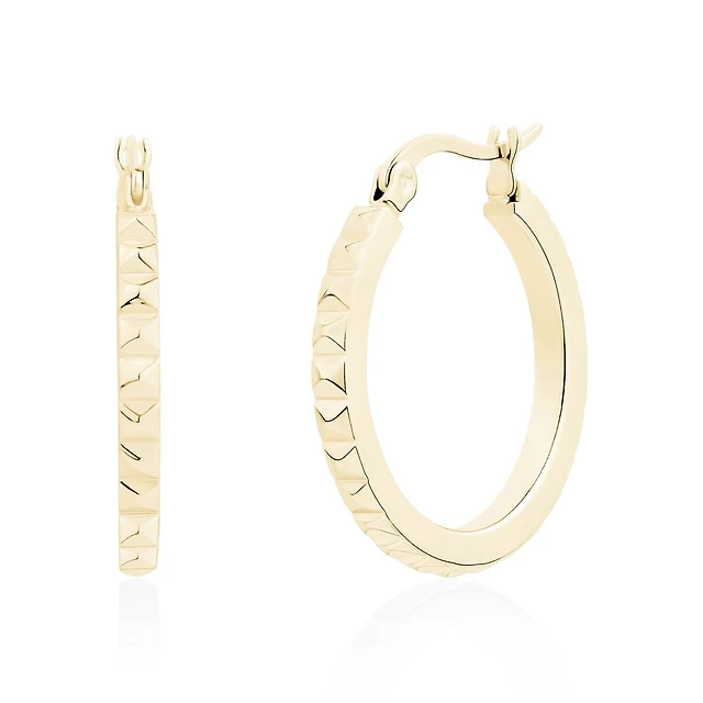 Gold Tone Stainless Steel Diamond Size Hoop Earrings – 25mm. Color: yellow | Doucet Latendresse