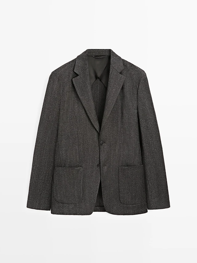 Herringbone wool blend blazer