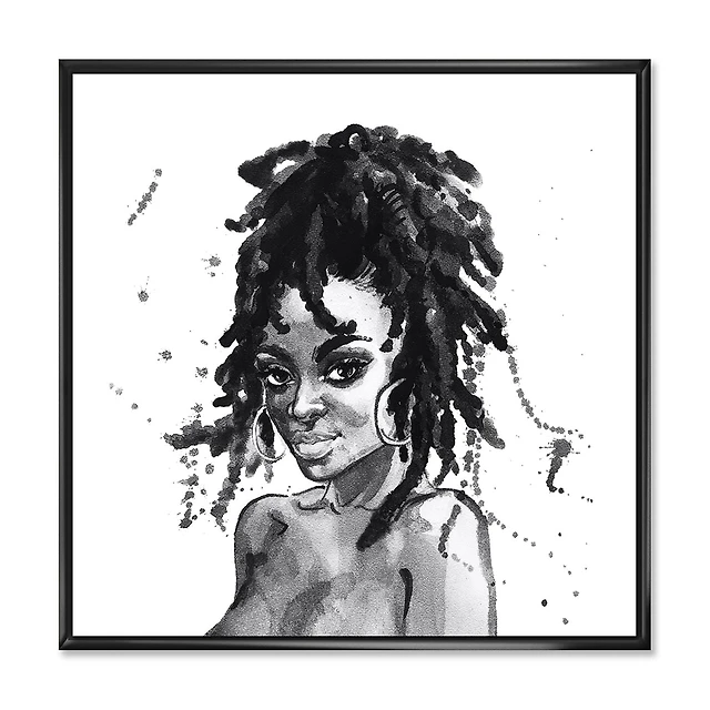 Designart Monochrome Portrait of African American Woman II FLOAT FRAME WALL ART