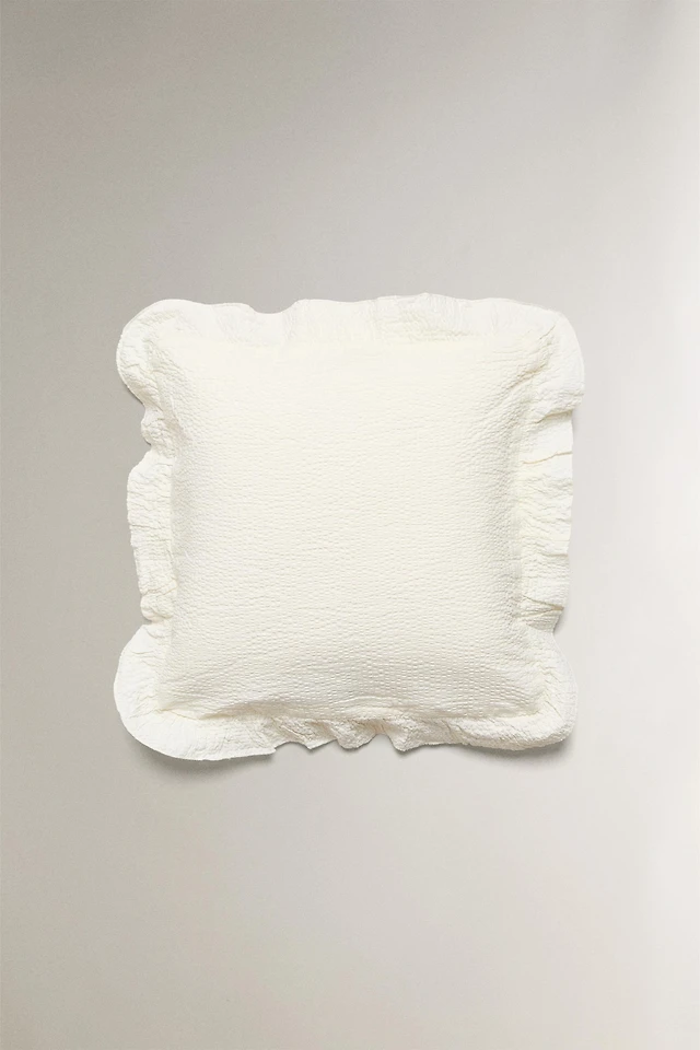 TEXTURED THROW PILLOW COVER WITH RUFFLE TRIM