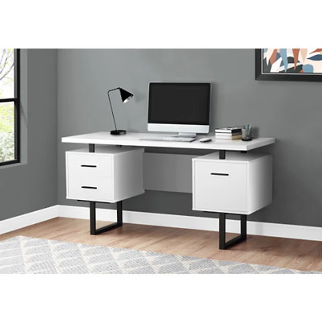 Monarch Specialties Computer Desk, Home Office, Laptop, Left, Right Set-up, Storage Drawers, 60"l, Work, Metal, Laminate, White, Grey, Contemporary, Modern