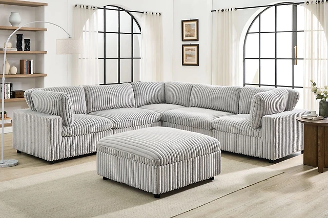 K-Living Colton Adjustable Modular Sectional with Ottoman in Mink Fabric