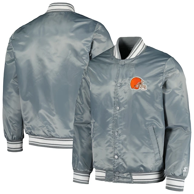 Men's Starter Heather Charcoal Cleveland Browns Locker Room Satin Varsity Full-Snap Jacket
