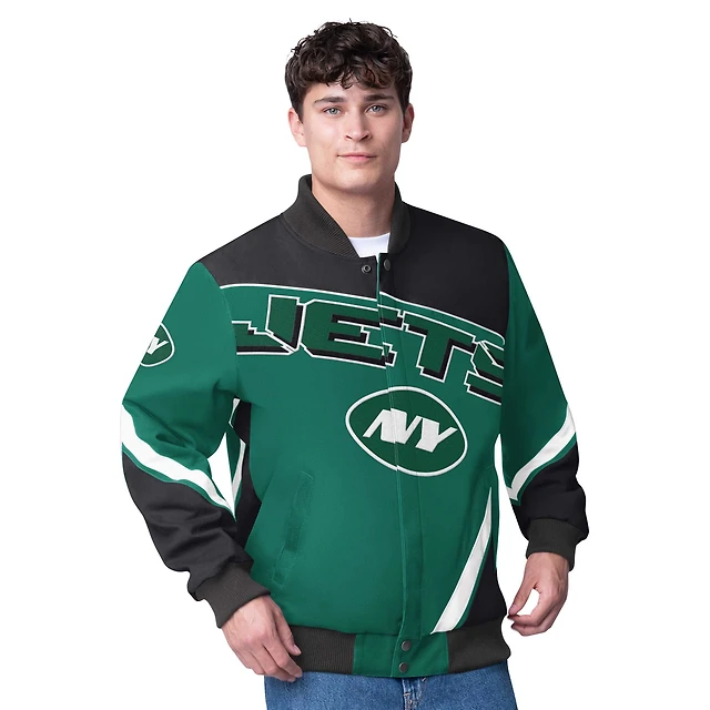 Men's Starter White New York Jets Gotham City Half-Zip Hoodie Jacket