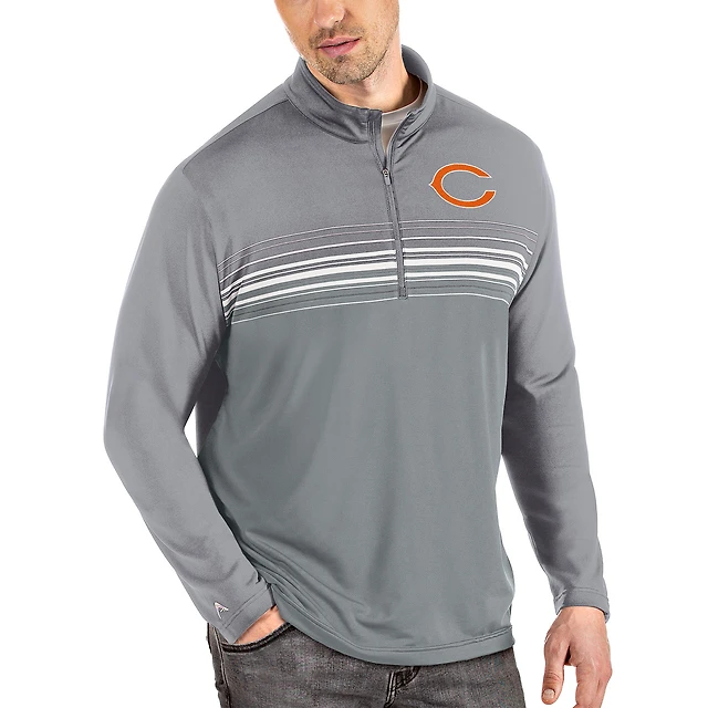 Men's Antigua Steel/Gray Chicago Bears Big & Tall Pace Quarter-Zip Pullover Jacket