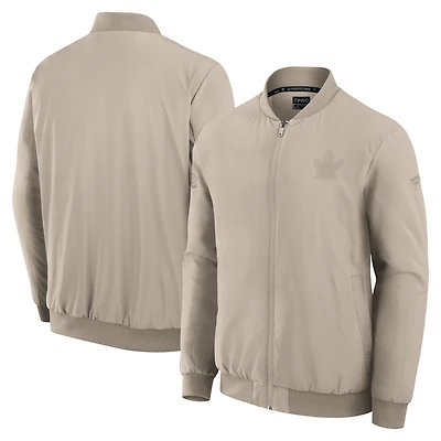 Men's Fanatics Tan Toronto Maple Leafs Authentic Pro Road Lightweight Full-Zip Bomber Jacket