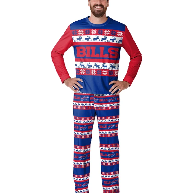 Men's FOCO Royal Buffalo Bills Wordmark Ugly Pajama Set