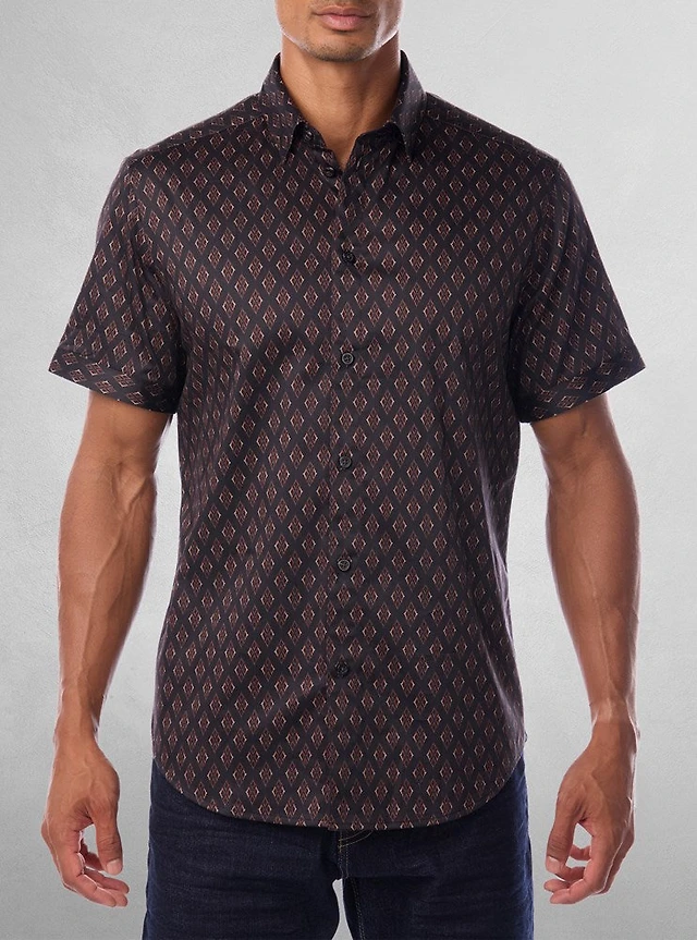 Short-Sleeve Slim-Fit Knit-Like Dress Shirt