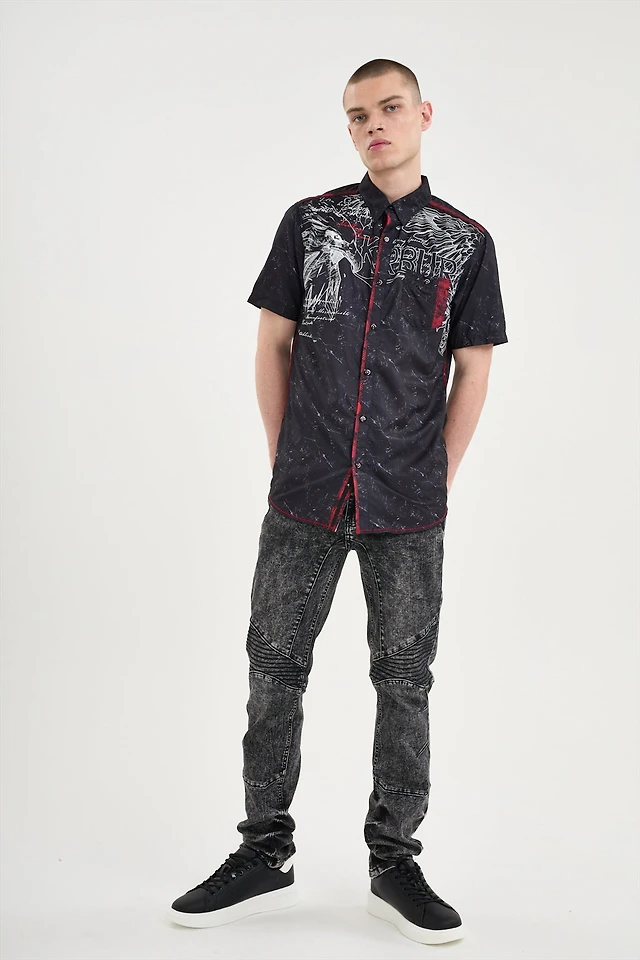 Men’s Vegan Leather Biker Jacket with Detachable Quilted Hood by Project Raw