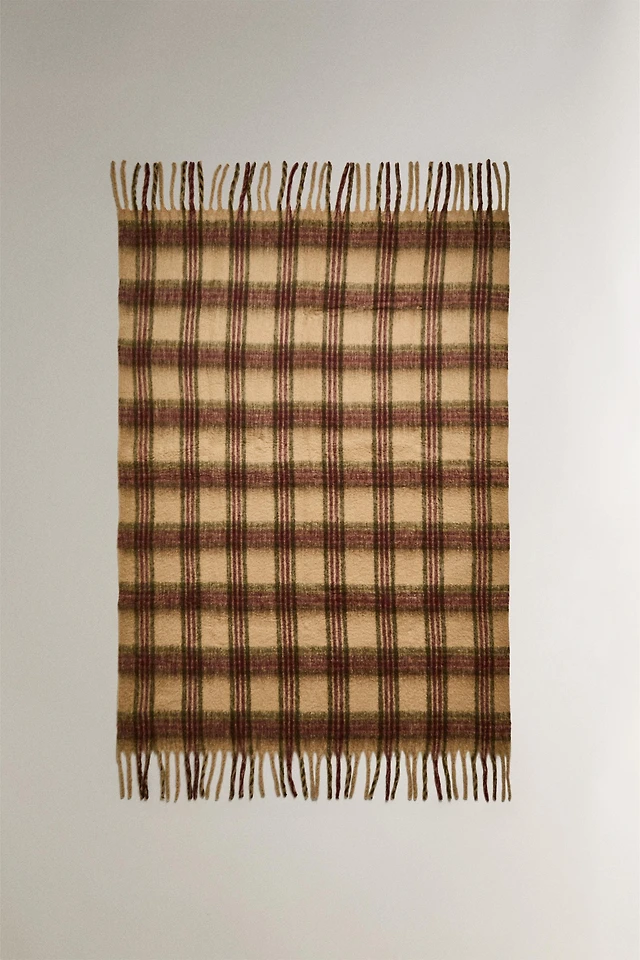 PLAID BLANKET WITH FRINGE