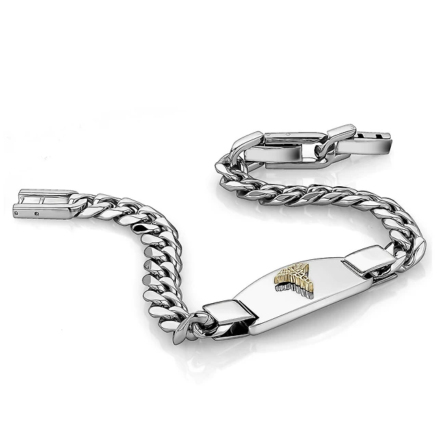 8.5'' Men's double curb bracelet - Sterling silver. Color: white | Doucet Latendresse