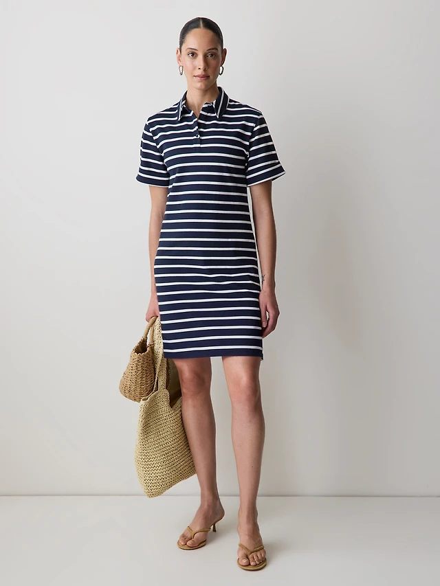 Short-Sleeve Linen-Blend Midi Dress with Shirt Collar