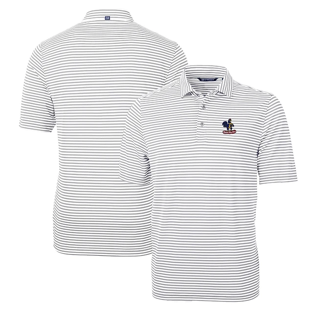 Men's Cutter & Buck Gray Delaware Fightin' Blue Hens Throwback Logo Virtue Eco Pique Stripe Recycled Polo