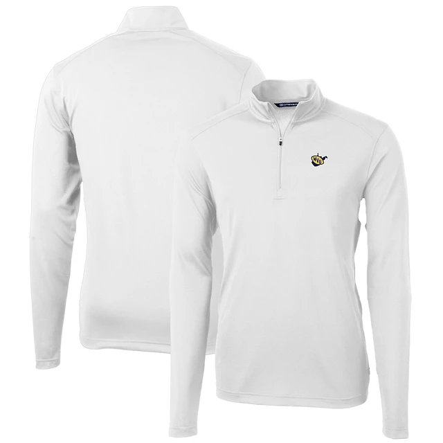 Men's Cutter & Buck White West Virginia Mountaineers Virtue Eco Pique Recycled Quarter-Zip Pullover Top