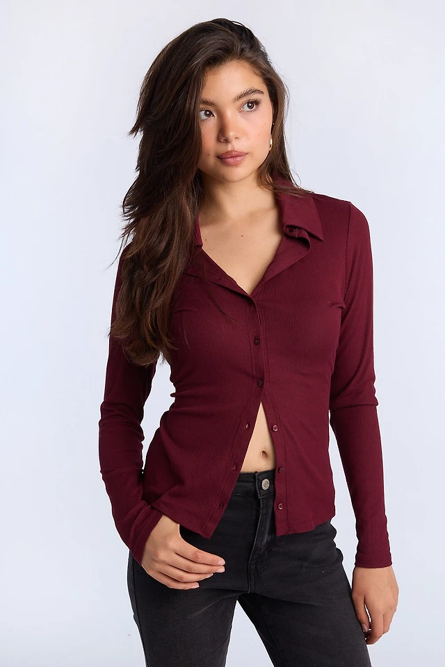 Haut polo à manches longues boutonné l'avant