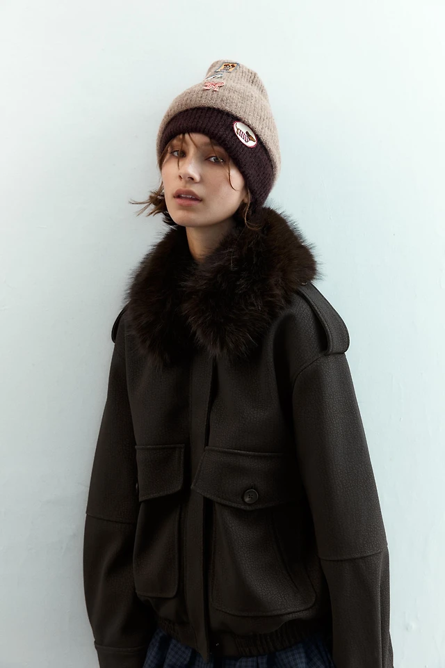 STRIPED KNIT HAT WITH WOOL POMPOM