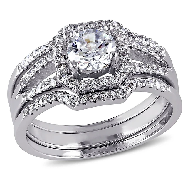 Miabella 2-1/10 Carat T.G.W. Created Moissanite Sterling Silver Vintage Halo 3-Piece Bridal Ring Set