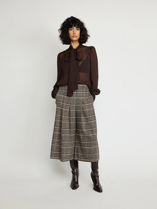 Paisley Print Wide-Leg Trousers with Chain Belt