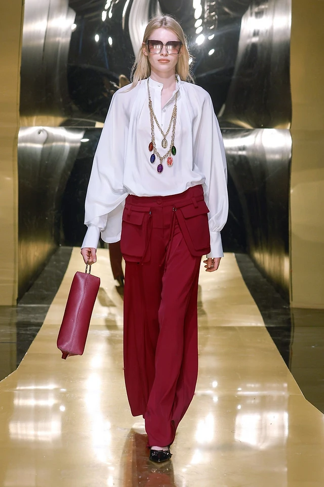Paisley Print Wide-Leg Trousers with Chain Belt