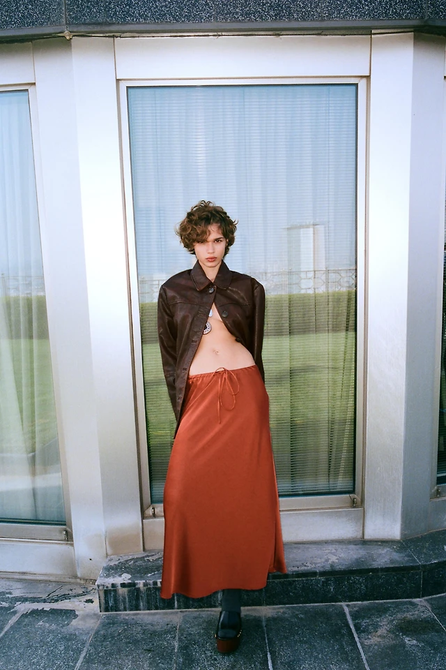 100% LINEN MIDI SKIRT ZW COLLECTION